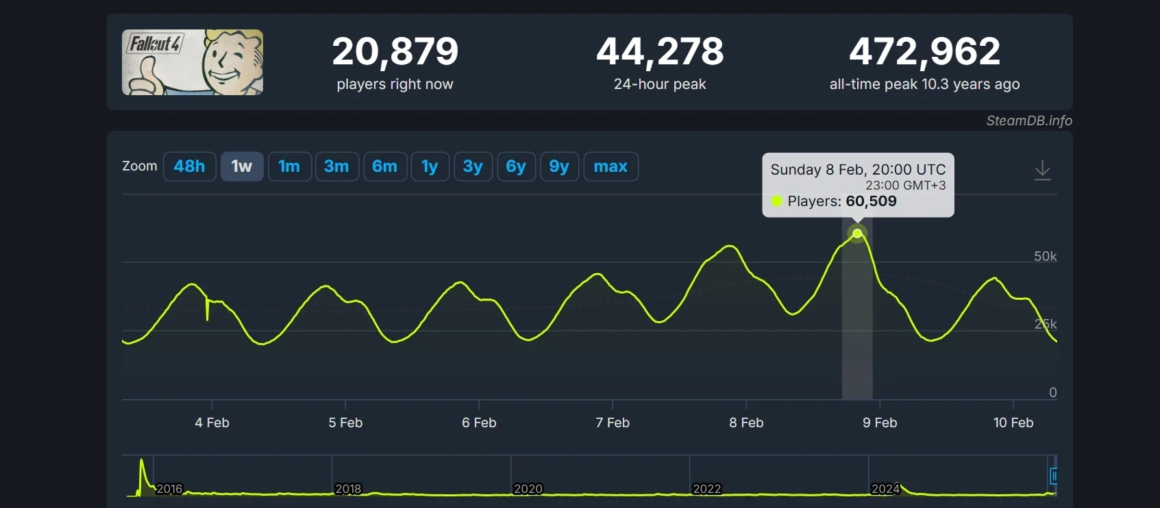 Онлайн Fallout 4 за неделю. Источник: SteamDB