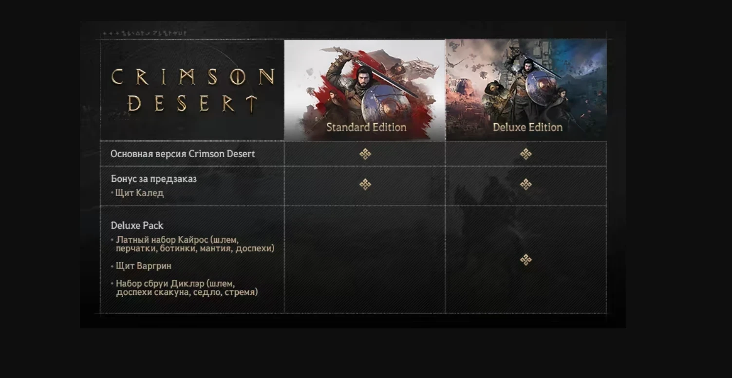 За предзаказ Crimson Desert даётся бонус в виде косметических предметов, но каких-то дополнительных возможностей для покупок не предусмотрено. «Это премиальная игра, за которую вы платите один раз и наслаждаетесь прохождением», — объяснил руководитель отдела Pearl Abyss по связям с общественностью Уилл Пауэрс.