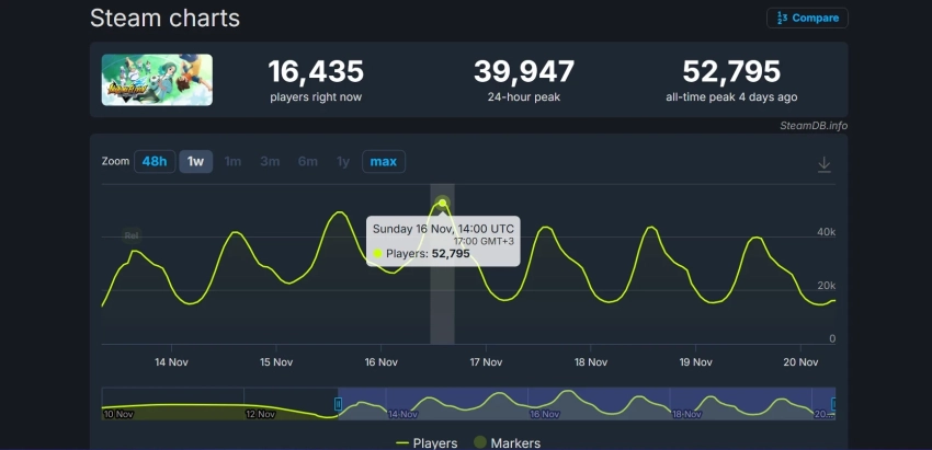 Пиковый онлайн Inazuma Eleven: Victory Road в Steam почти достиг отметки в 53 тысячи единовременных игроков. Причём это произошло 16 ноября — лишь спустя три дня после релиза.